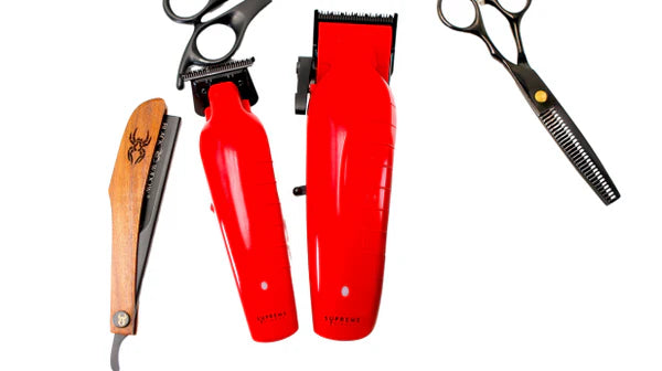 The VADER Trimmer & Clipper Set by Supreme Trimmer combines the new DC Trimmer and BLDC Clipper, perfect for debulking and creating sharp, straight lines. Equipped with DLC blades that stay cool, these tools ensure a professional cut every time. Each product comes with its own accessories and charging stand, so you're always ready to go.